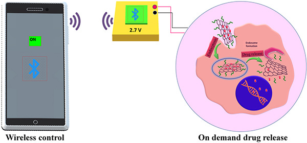 The study abstract reveals how a cell phone can emit signals to activate a low voltage current that interacts with Graphene Oxide (GO) molecules, causing efficient delivery of drug payloads: