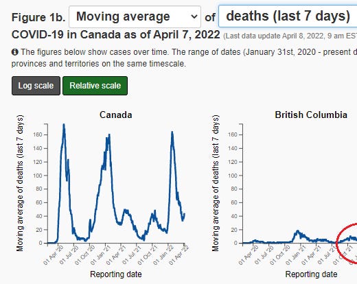 “The above analysis follows on from the Canada-wide analysis and data. Good Canada-wide data is only available until October 2021. British Columbia + Alberta have data to the end of December 2021”.