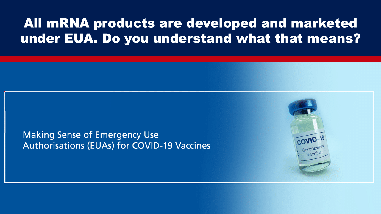 • Do you know that the mRNA vaccines on the market and in trials now were all developed under Emergency Use Authorisation (EUA)?