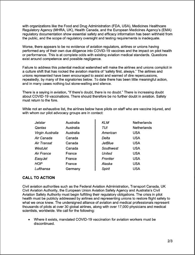 An International Coalition of Aviation and Medical Professionals represents over 30 airlines, 1000s of pilots, and over 17,000 physicians and medical scientists.