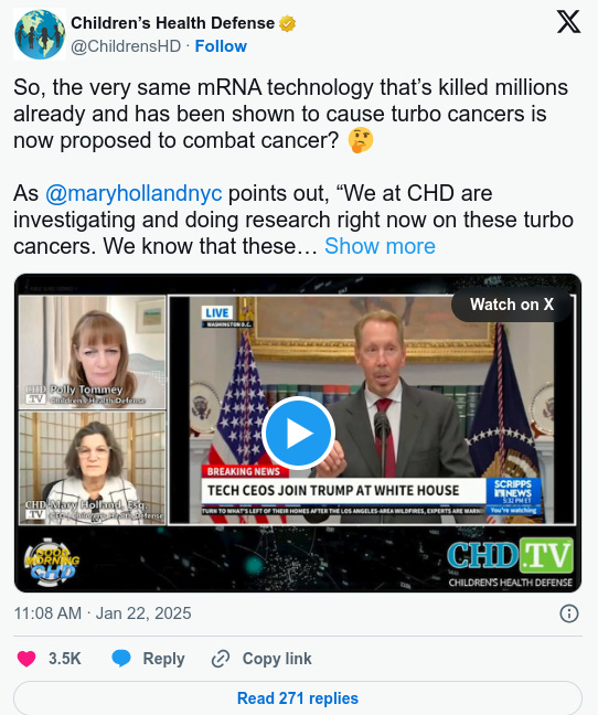 “Trump doesn’t have control over Larry Ellison’s tongue. Larry Ellison is going to say what Larry wants to say,” he said. “That doesn’t mean that in any US government deal that is ultimately consummated with Larry Ellison as a partner that his fantasies about mRNA have to be realized. It’s just Larry Ellison spitballing.”