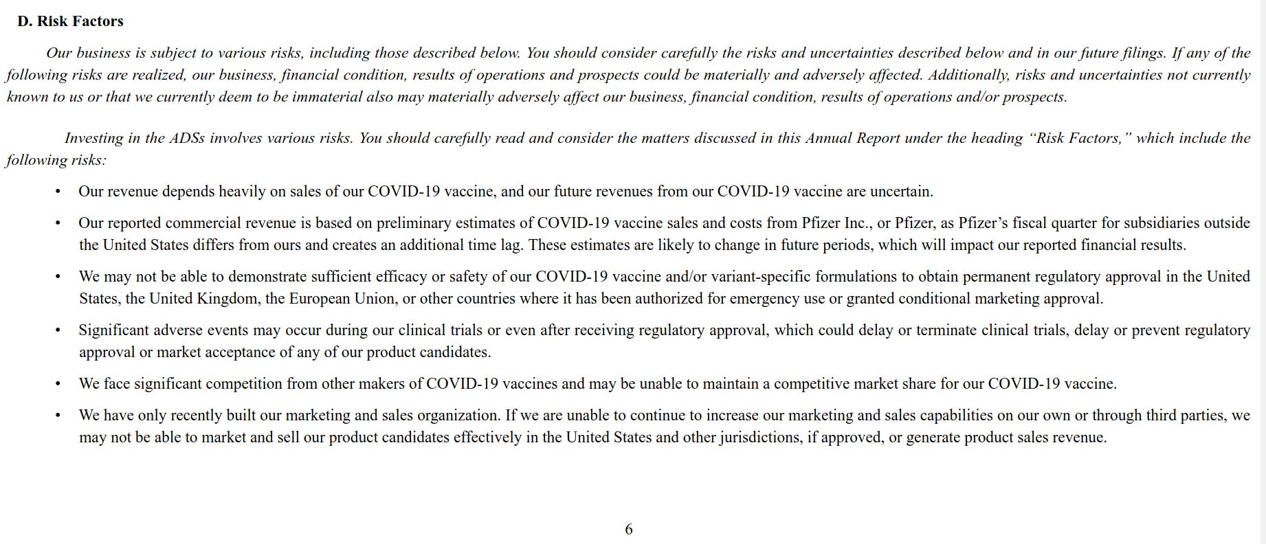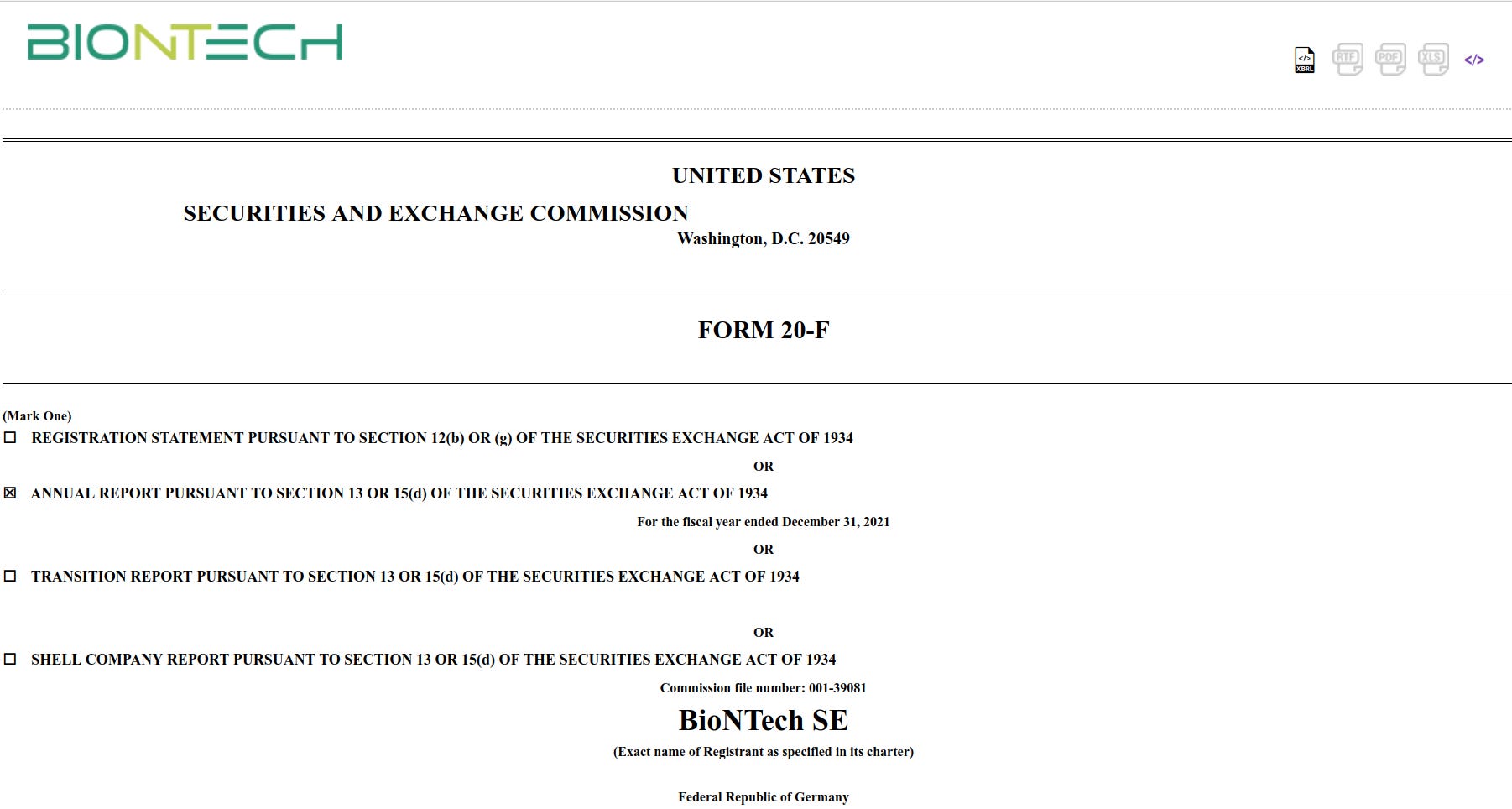 While we are eagerly waiting for the next Pfizer document dump, BioNTech released its annual SEC Filing.