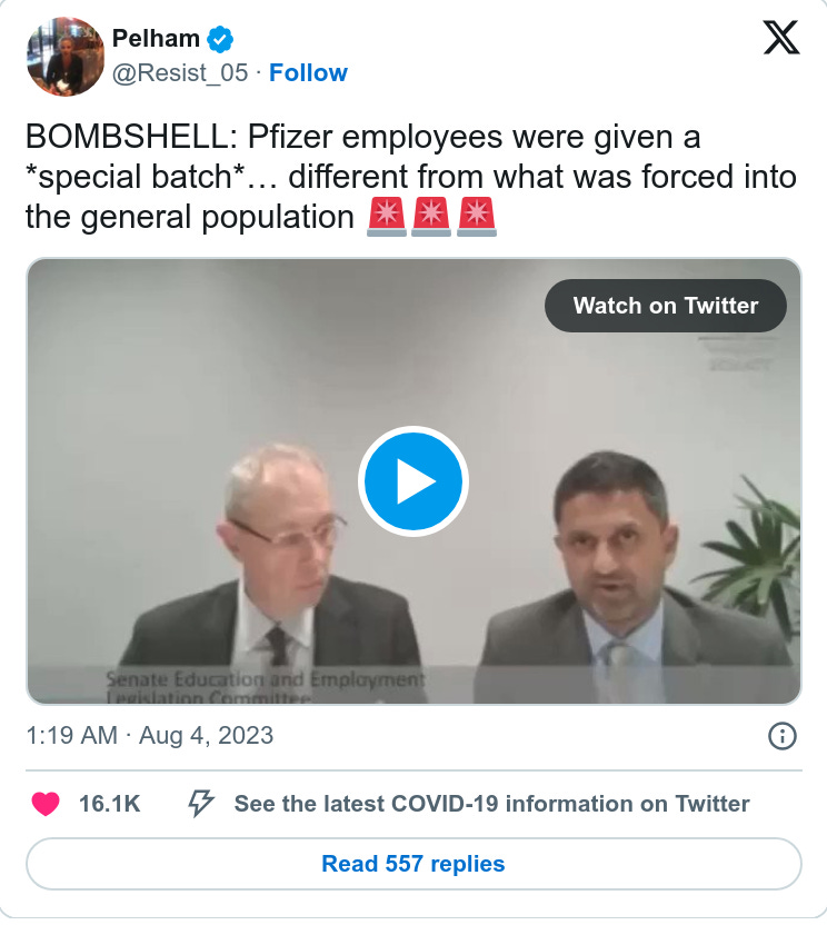 BOMBSHELL: Pfizer Employees Were Given a *Special Batch* Different From What Was Forced Into the General Population