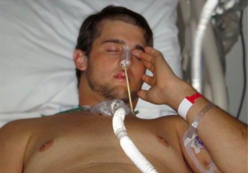 Zack Dunlap unconscious in the hospital. (Courtesy of Zack Dunlap)