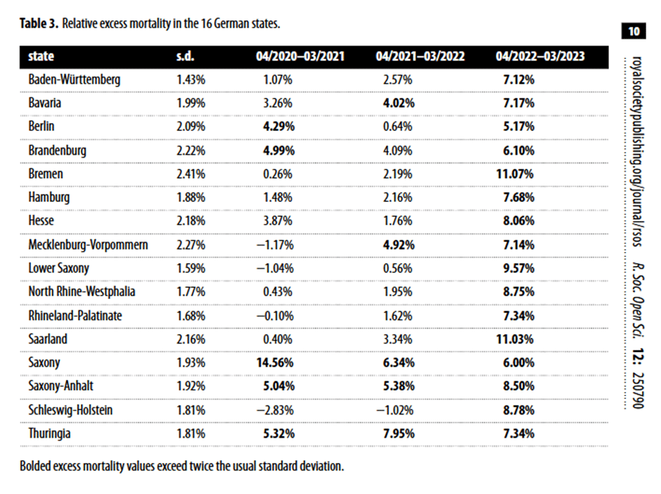 A recent study analysed excess mortality in German federal states during the “first three years of the covid-19 pandemic” using an actuarial approach.