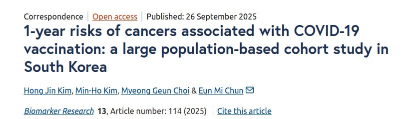 South Korea study of 8.4 million adults finds higher risks of overall, lung, prostate, thyroid, gastric, colorectal, and breast cancers — across both mRNA and viral-vector platforms.… pic.twitter.com/2PLFn6u9HQ