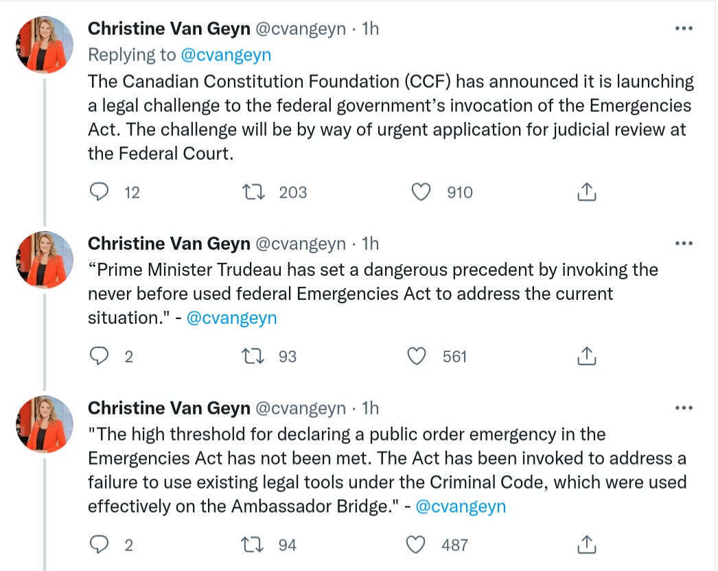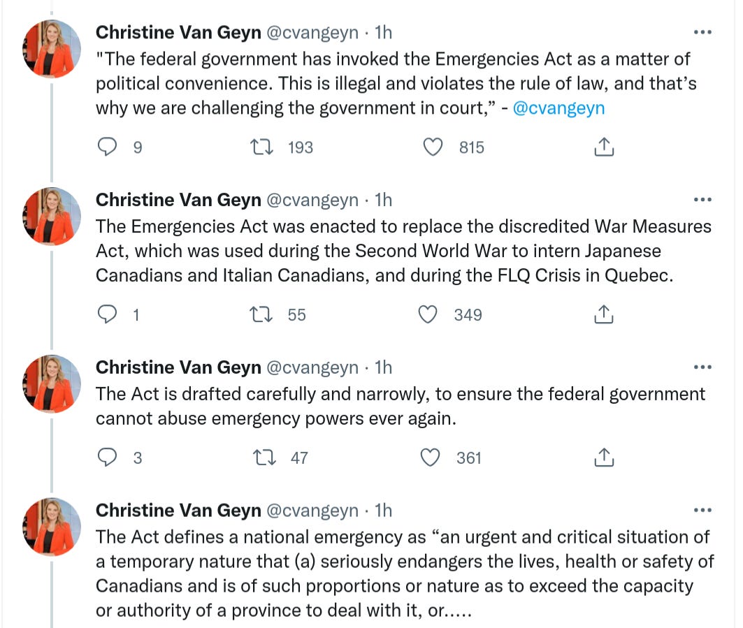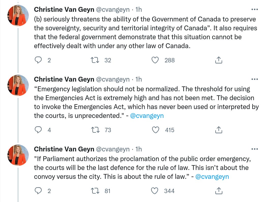 If the Emergencies Act is denied, there's a hundred other laws they can use to harass and ignore the protesters. It won't redeem the truckers, and it won't change the prevailing support of Canadians for their authoritarian government. It doesn't seem enough Canadians want relief. They seem to prefer safety, not liberty. Too bad they won't get either. The bigger question is whether sentiment is any different south of the border.