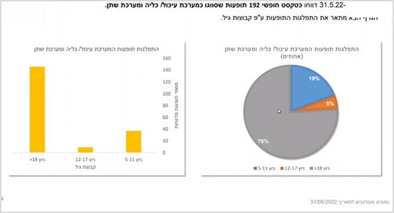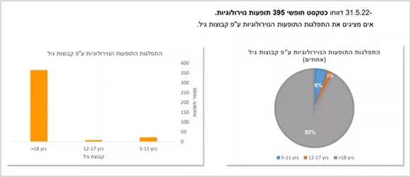 During the study period, 8,054 reports of vaccine-related adverse events were received in all age groups (5-11; 12-17; 18 and over), of which 6,259 were defined as "valid" (without duplication or empty reports ). In addition, 2,075 adverse events were reported as free text. Of the reports submitted as free text - five categories together constitute about 70% of all reported adverse events. These categories were analyzed by the research team, and include (in order of frequency):