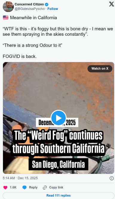 “WTF is this - it’s foggy but this is bone dry - I mean we see them spraying in the skies constantly”.