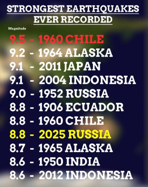 The USGS has upgraded the Russia earthquake to M8.8, tying it as the 5th-strongest earthquake ever recorded globally.