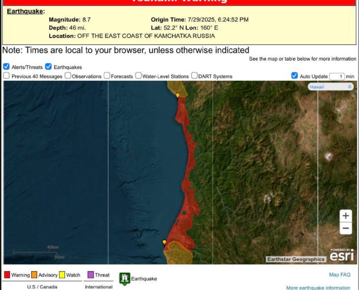 BREAKING: Tsunami Alerts Issued for Hawaii, West Coast After Magnitude 8.8 Earthquake Off Russia