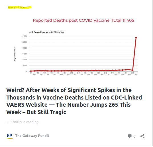According to fake news Wikipedia, the British anti-disinformation organization Logically found that 30% of referral traffic to OpenVAERS, a website which promotes misinformation about COVID-19 vaccines, came from The Gateway Pundit.