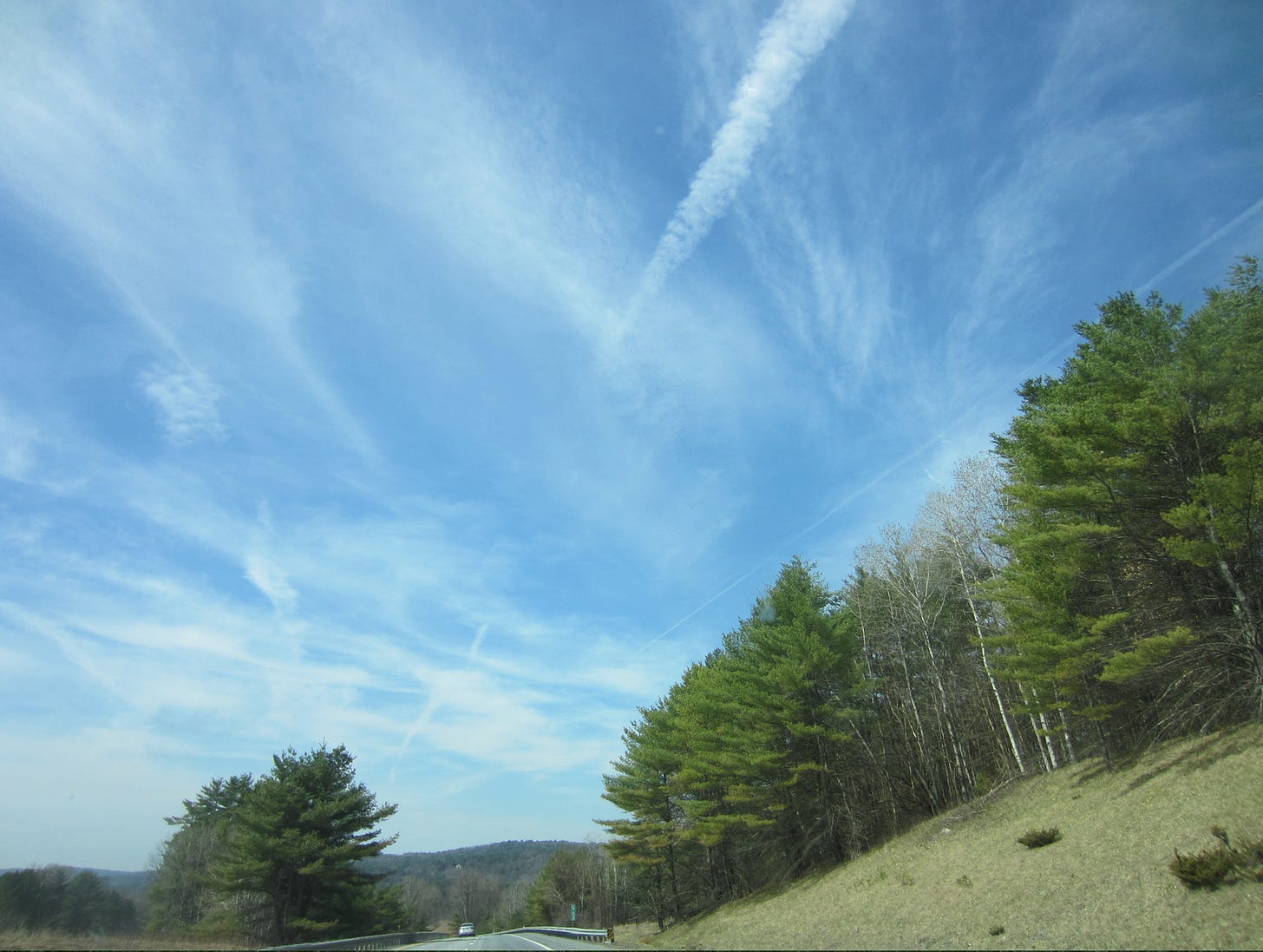 It's about 7 am on an April morning in rural New England -- and when I say "rural," I mean the closest village (pop. 150) is 8 miles away. More jets have gone by overhead than pickup trucks down the road, and the sky is already tracked and dimmed by chemtrails. Why?