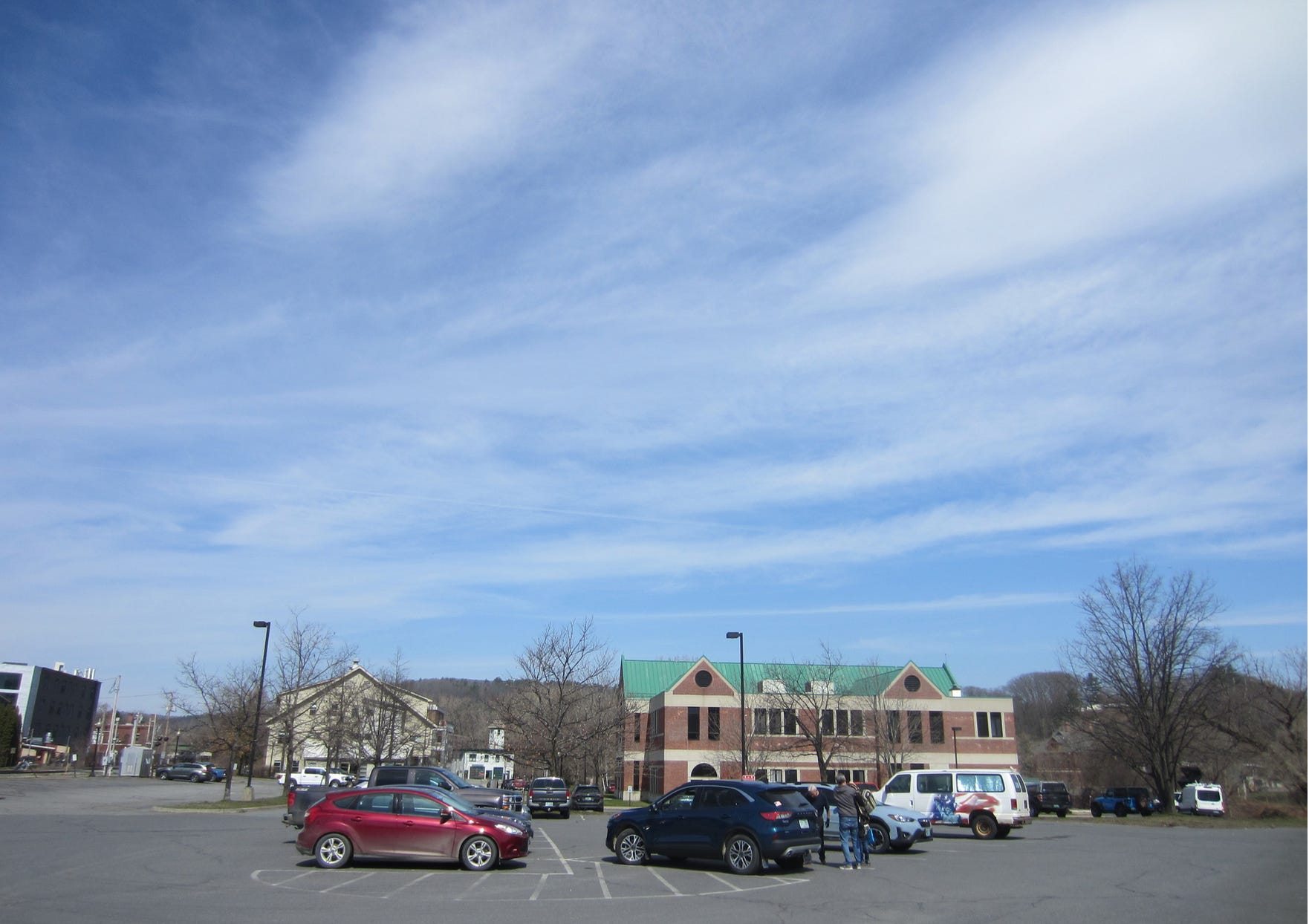 Here we are at a town parking lot. What should be a beautiful, cloudless spring sky is a hazy, mess of blurry paralleling chemtrails. WHY?