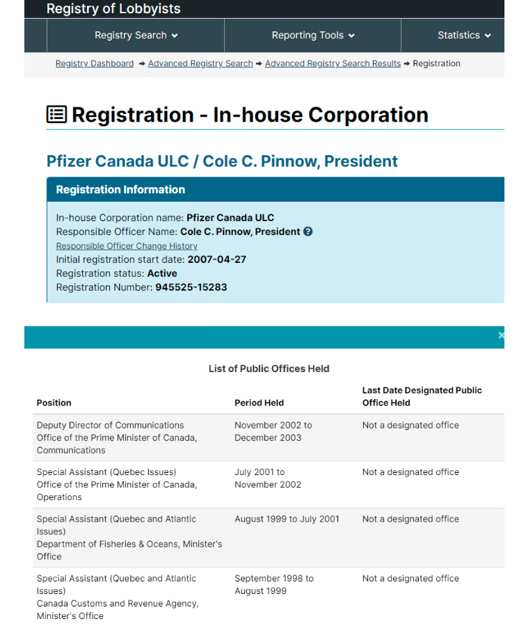 Pfizer has been lobbying Ottawa for years to get its products distributed here. One of its officials, Steven Hogue, worked in the Prime Minister’s Office back when Jean Chretien was in charge.