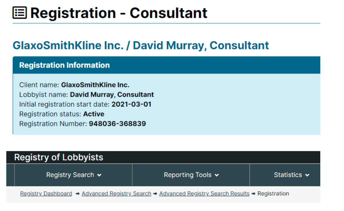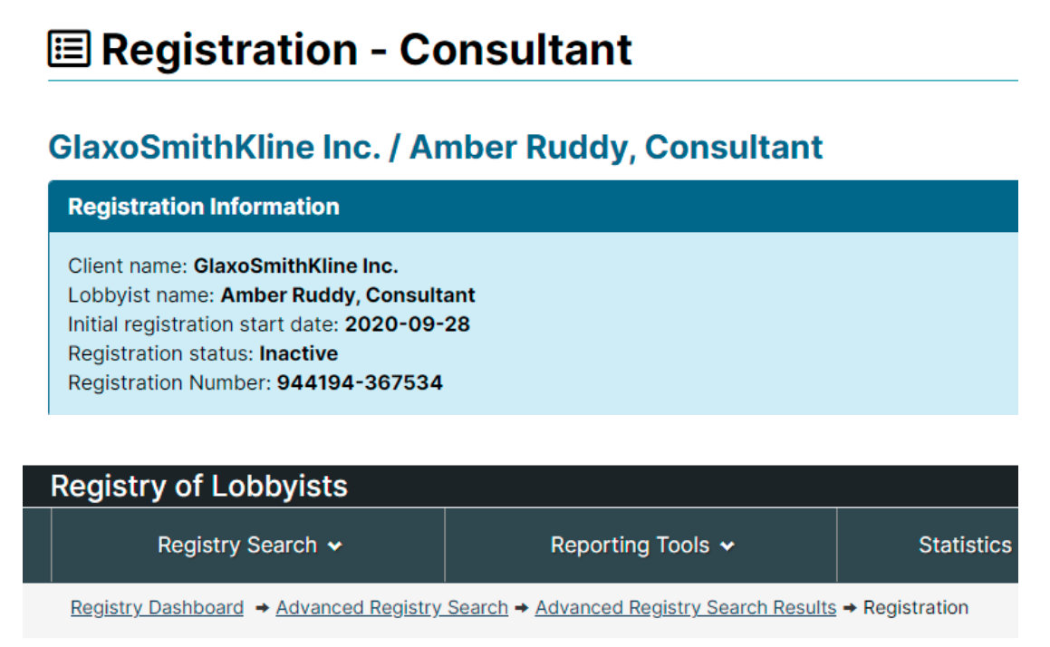 GlaxoSmithKline is another one that’s busy in Ottawa. Lobbyists for the company have ties to both the Liberal and Conservative Parties of Canada. In fact, Amber Ruddy, the Secretary of the National Council of the CPC, used to be a GSK lobbyist. Sanofi is involved in this as well.