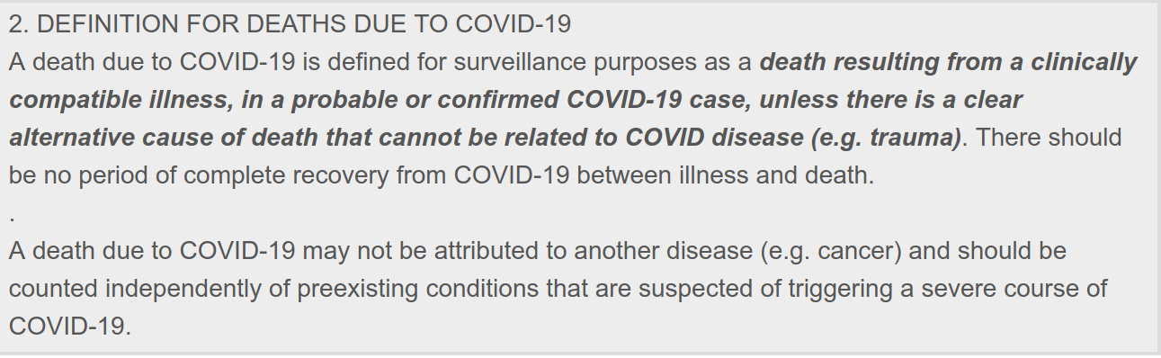 Definitions Matter: What The World Health Organization Calls A "COVID Death"? The Answer Is Quite Surprising, And Isn't Based On Science At All.