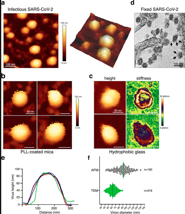 Atomic force microscopy analysis of native infectious and inactivated SARS-CoV-2 virions
