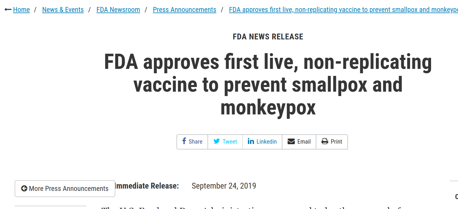 The Monkeypox PSYOP is designed to scare people into taking smallpox vaccine, conveniently approved by the FDA in 2019 :