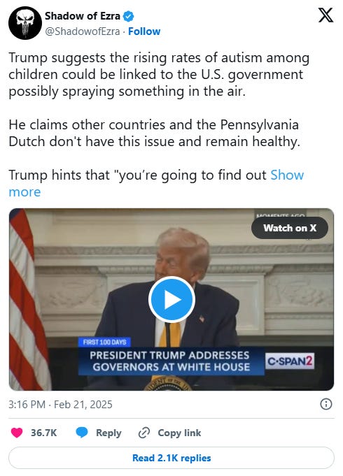 In February, Trump suggested that the rise in autism cases among children might be linked to aerial spraying or pesticide contamination in food, adding another layer to the growing chorus of voices questioning the environmental safety of unregulated atmospheric practices.