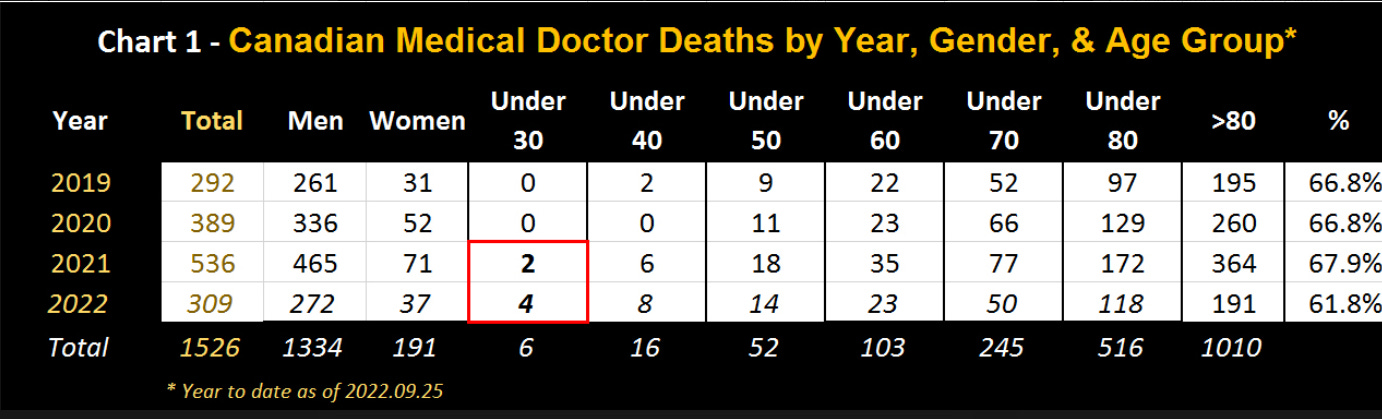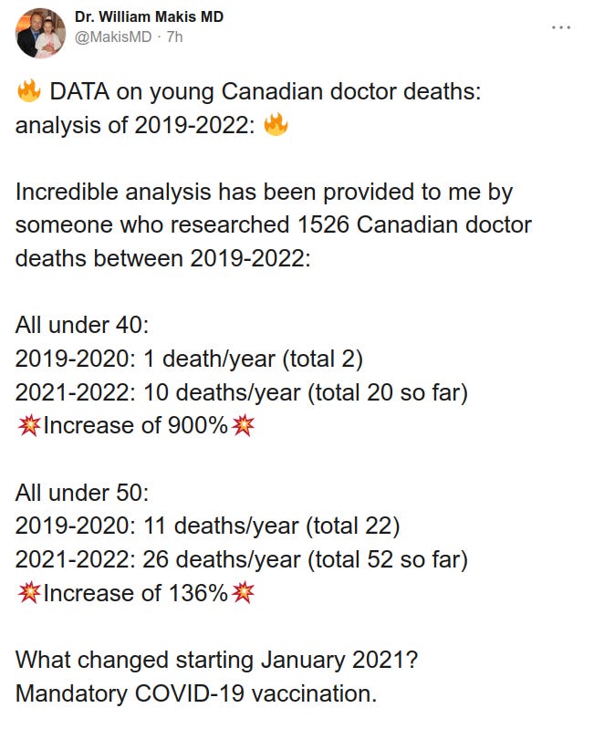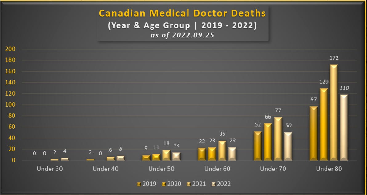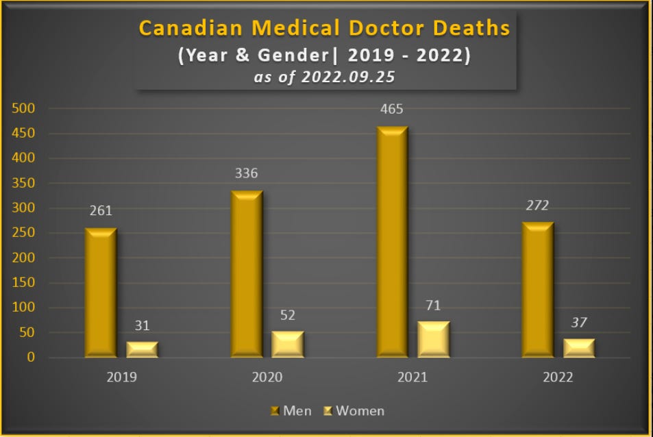 Incredible analysis by someone who researched 1526 Canadian doctor deaths between 2019-2022
