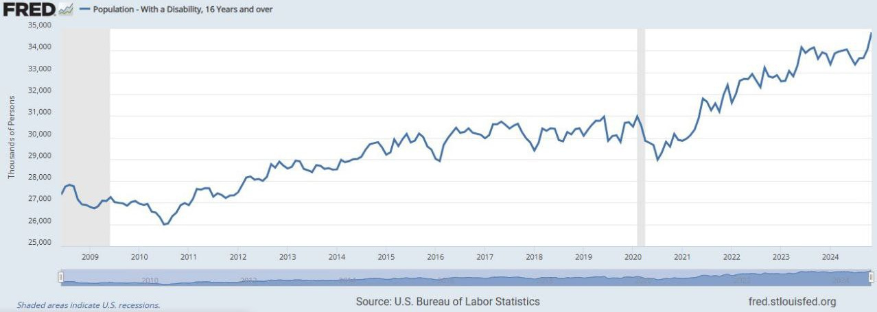 "We started inflecting in February of 2021...It was a rapid...3 to 4 standard deviation rate of change into September '22...we added 3 million [disabled Americans] in the Bureau of Labor Statistics...[and] half of the newly disabled came from the employed pool."