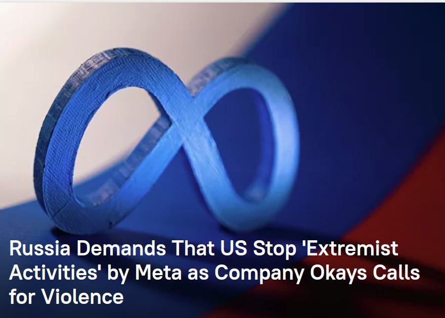 This comes after Meta spokesperson Andy Stone stated that as a result of what he dubbed "the Russian invasion of Ukraine", Meta has "temporarily made allowances for forms of political expression that would normally violate" its rules "like violent speech such as 'death to the Russian invaders'".