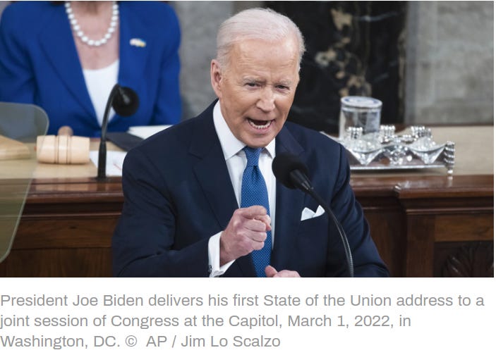 “Throughout our history we’ve learned this lesson – when dictators do not pay a price for their aggression, they cause more chaos,” Biden said at the opening of his State of the Union speech on Capitol Hill Tuesday night.