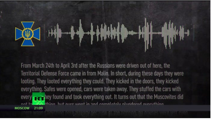 Ukrainian security officials and Western journalists who went looking for Russian atrocities northwest of Bucha in the Kiev region found no signs of human rights abuses, according to phone call records obtained by RT. Instead, locals told journalists the Russian troops gave them food and treated them well. Meanwhile, a Ukrainian official complained that his own side’s militia looted everything.