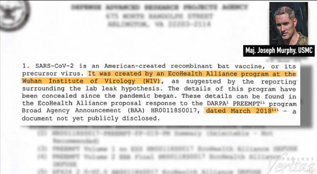 According to the leaked report written by a Marine, EcoHealth Alliance sought a contract to use controversial gain-of-function genetic manipulation techniques to study bat coronaviruses. While the proposal was rejected by DARPA, it was subsequently picked up by Anthony Fauci's National Institute of Allergy and Infectious Disease, which funneled money to EcoHealth via a sub-grant.