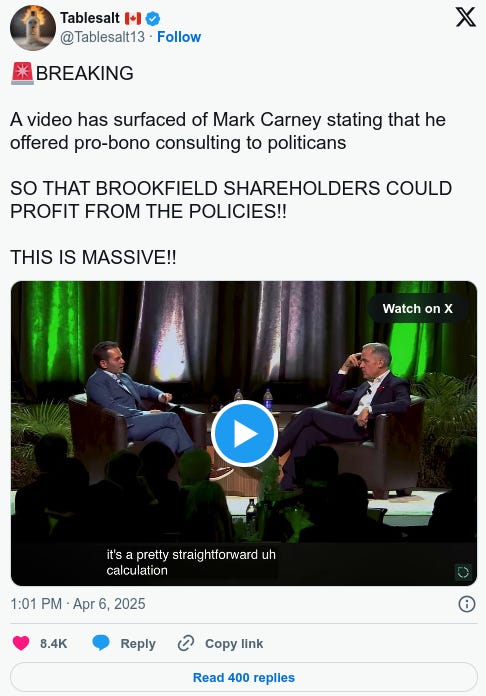BREAKING A video has surfaced of Mark Carney stating that he offered pro-bono consulting to politicans