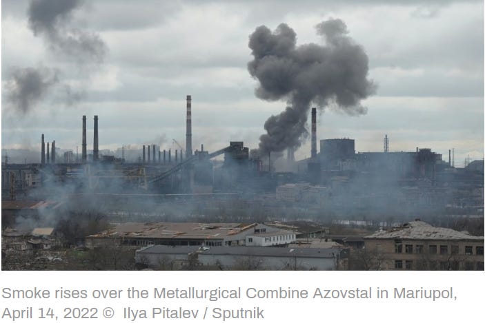 “Considering the catastrophic situation at the Azovstal metallurgical plant, and being guided by purely humane principles, the Russian Armed Forces offer militants of nationalist battalions and foreign mercenaries to stop hostilities and lay down their arms starting 6am Moscow time on April 17, 2022,” the Russian Defense Ministry said in a late-night announcement on Saturday.
