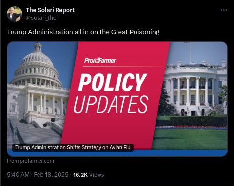 Russia&US agree on Ukraine peace talks. Coup in Kiev. Hamas proposes release of all phase 2 hostages at once. Trump Admin Shifts Strategy on Avian Flu. Bird Flu Is a Rerun of the Covid Playbook