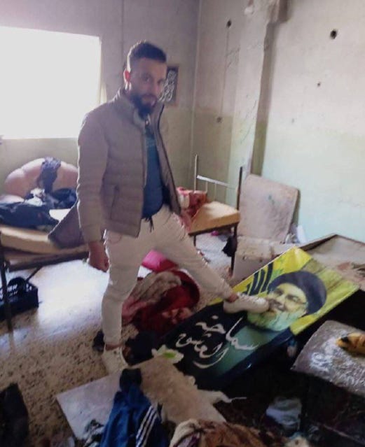 Syrians launch rockets at Hezbollah targets deep in Lebanon. In the photo: Sunni Islamists from Syria invaded a Shiite village in Lebanon today, to step on a picture of Nasrallah.