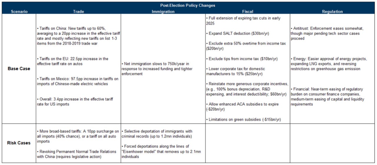 As we head into the inauguration, let's take a look at some of policy changes that we can expect from Trump 2.0. First, the table below from Goldman's research team, provides a useful summary of the key policy changes expected: