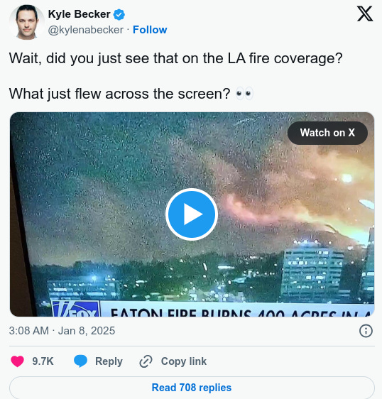 Wait, did you just see that on the LA fire coverage? What just flew across the screen?