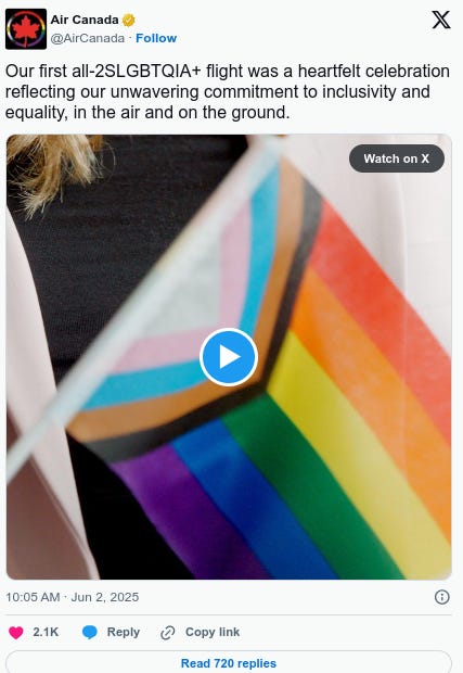 In a post on Twitter/X, the carrier called the trip “a heartfelt celebration” of its commitment to inclusion. Air Canada says this milestone builds on diversity programs already in place.