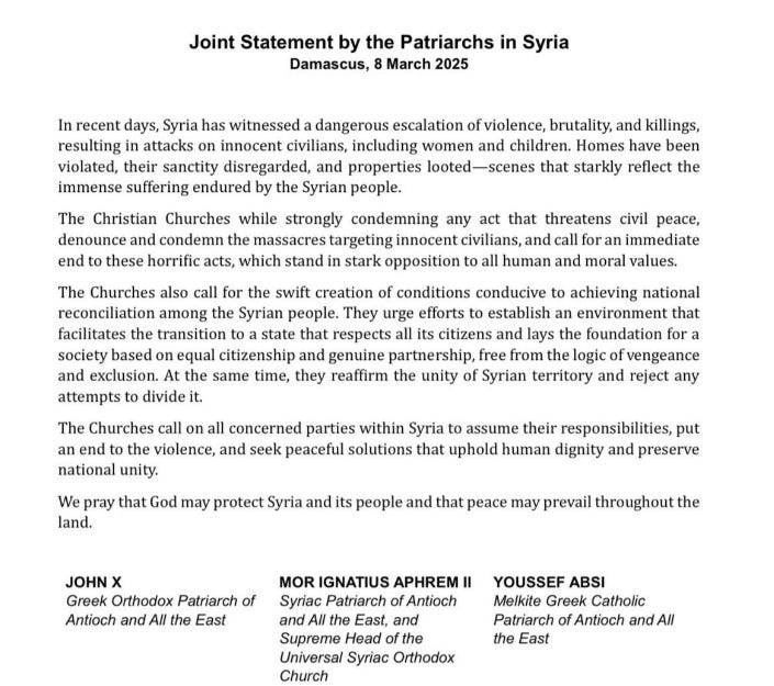 The Christian Patriarchs of Syria have released a joint statement after the Western backed regime began attacking Christian homes, with men, women and children violently attacked and murdered