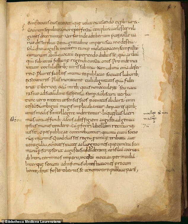 The Annals, written by the Roman historian Tacitus only 91 years after Jesus's death, begins with the death of Emperor Augustus in 14AD and finishes with Nero's suicide 54 years later. In Book 15, the historian discusses the Great Fire of Rome in 54AD, shortly before Nero's death, which the emperor blamed on a class 'called Christians.' The second sentence reads: 'Christus, from whom the name had its origin, suffered the extreme penalty during the reign of Tiberius at the hands of one of our procurators, Pontius Pilatus.' 'Christus,' the Latin version of 'Christ,' means 'the Anointed One' or 'the Messiah,' and comes from the Hebrew word Mashiach (Messiah).