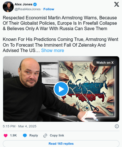 Respected Economist Martin Armstrong Warns, Because Of Their Globalist Policies, Europe Is In Freefall Collapse & Believes Only A War With Russia Can Save Them