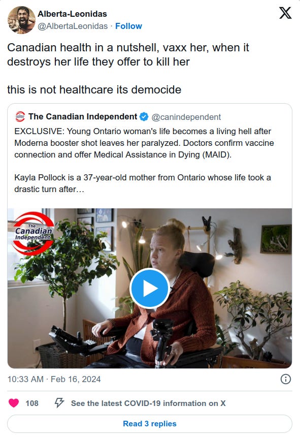 EXCLUSIVE: Young Ontario Woman’s Life Becomes a Living Hell After Moderna Booster Shot Leaves Her Paralyzed. Doctors Confirm Vaccine Connection and Offer Medical Assistance in Dying (MAID)
