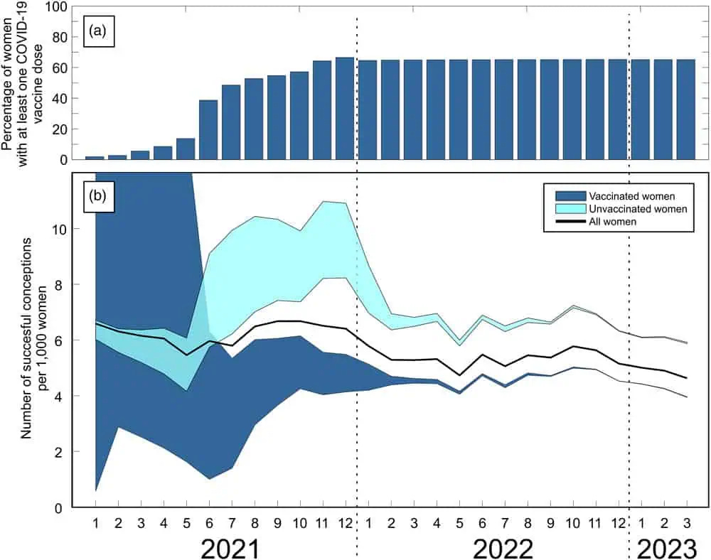 According to the findings, in 2022, vaccinated women averaged just 4 live births per 1,000 women per month.