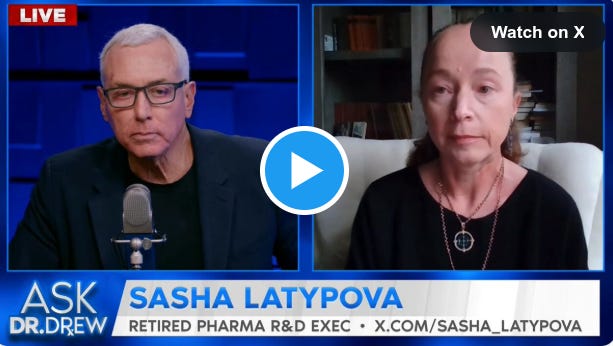 Note that this clip of retired pharma R&D executive Sasha Latypova is taken from a discussion with Dr. Drew posted to Rumble on September 2, 2025.