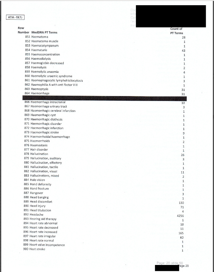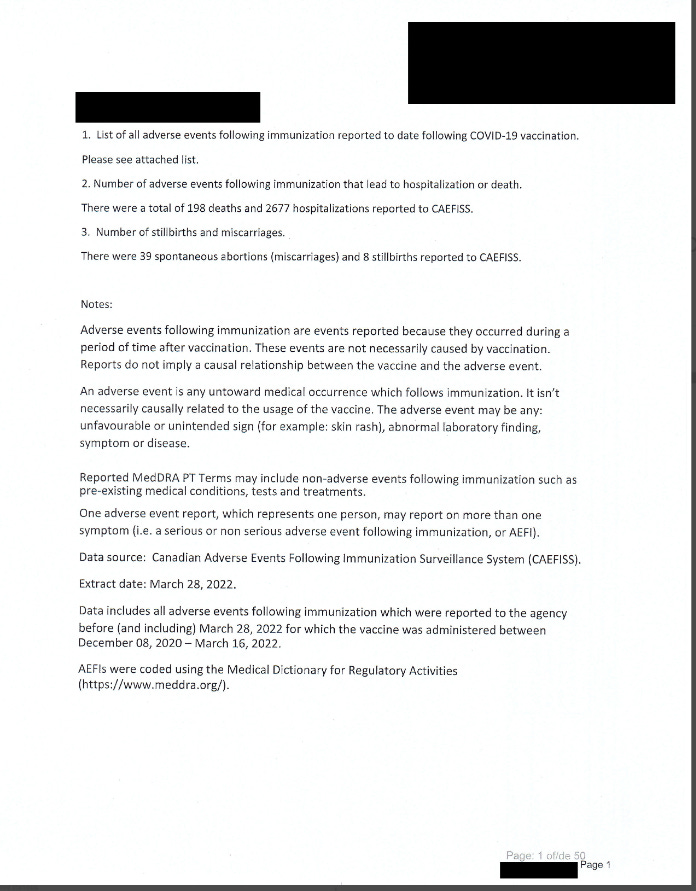 FOI Request Reveals a List of Adverse Events Following COVID-19 Vaccination in Canada