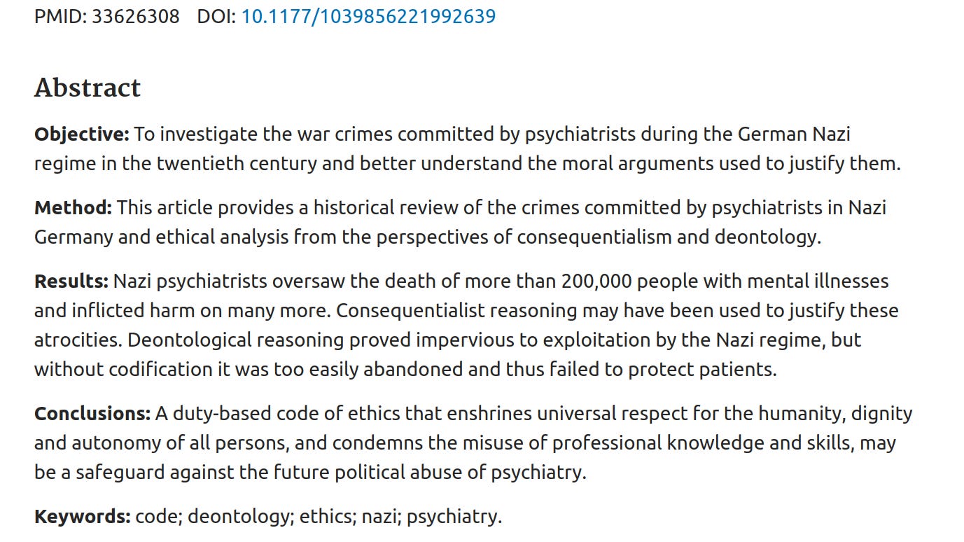 Psychiatry in Nazi Germany: an ethical analysis and relevance to psychiatry today