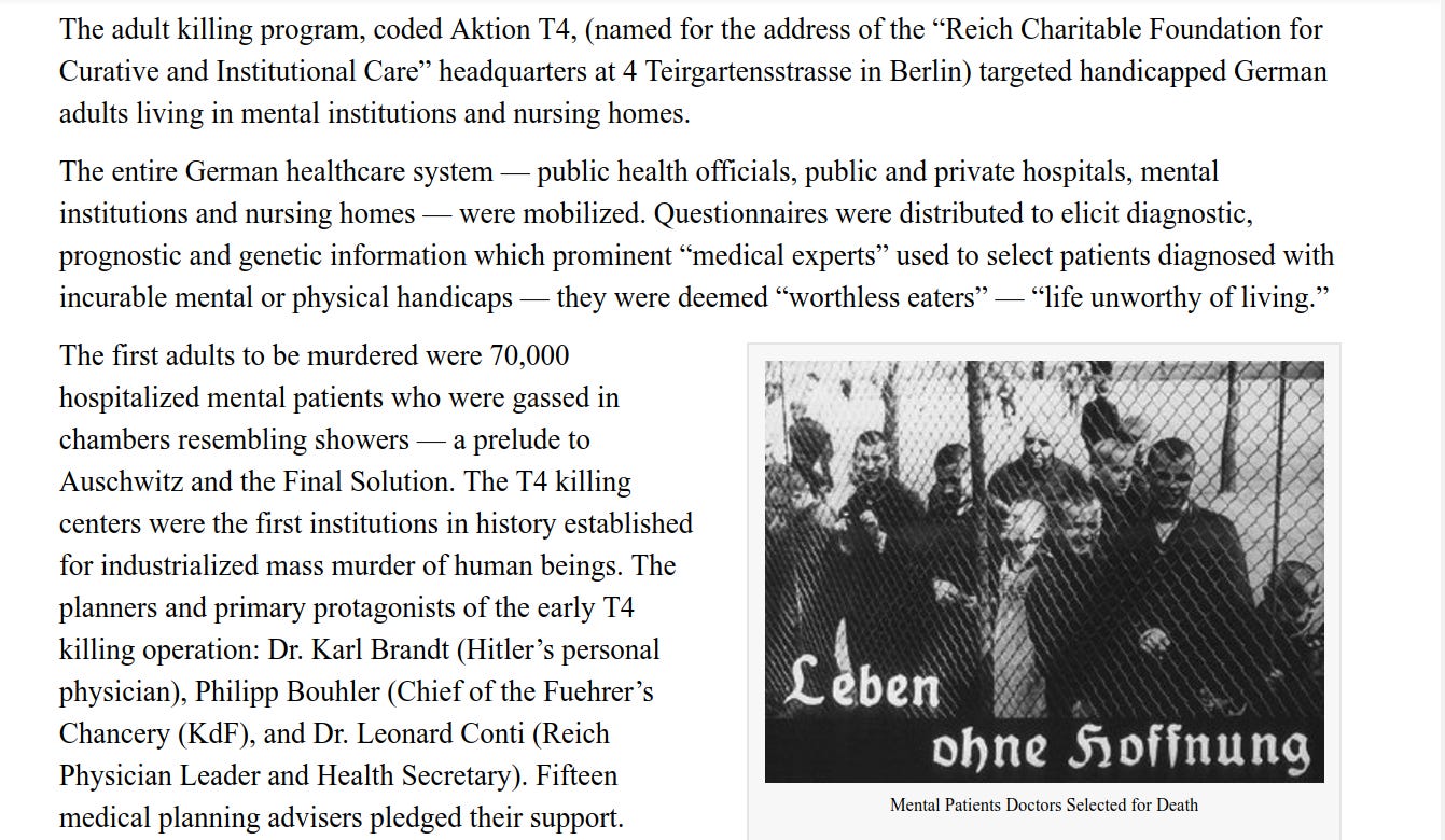 Lest we forget the medicalized murder of the mentally ill “useless eaters” by Nazi Germany.