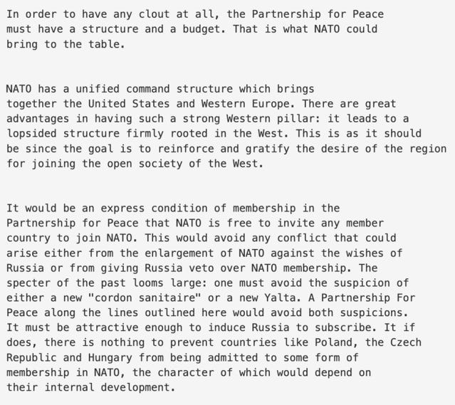 Translation: NATO’s new job is not to defend member states, but to expand its presence eastward and actively shape the internal politics of neighbouring states, especially the post-Soviet bloc.