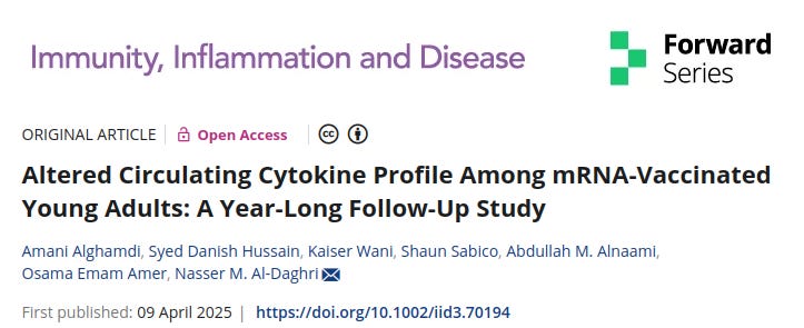 The researchers followed 84 people (mostly young adults, average age 27) for over a year after vaccination and discovered: Your body keeps making inflammatory proteins EVEN a YEAR later, vaccinated people had significantly elevated cytokines (inflammatory signaling molecules).
