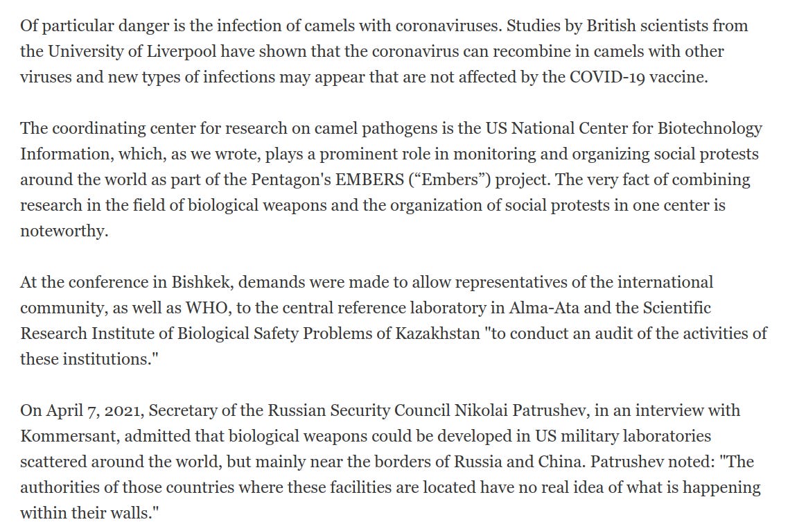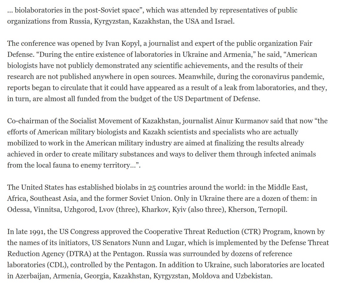 Chinese Foreign Ministry spokesman Zhao Lijian : “The US government should provide the international community with comprehensive information about the experiments that they are carrying out in the US military biolaboratories in Ukraine and in Fort Detrick…”