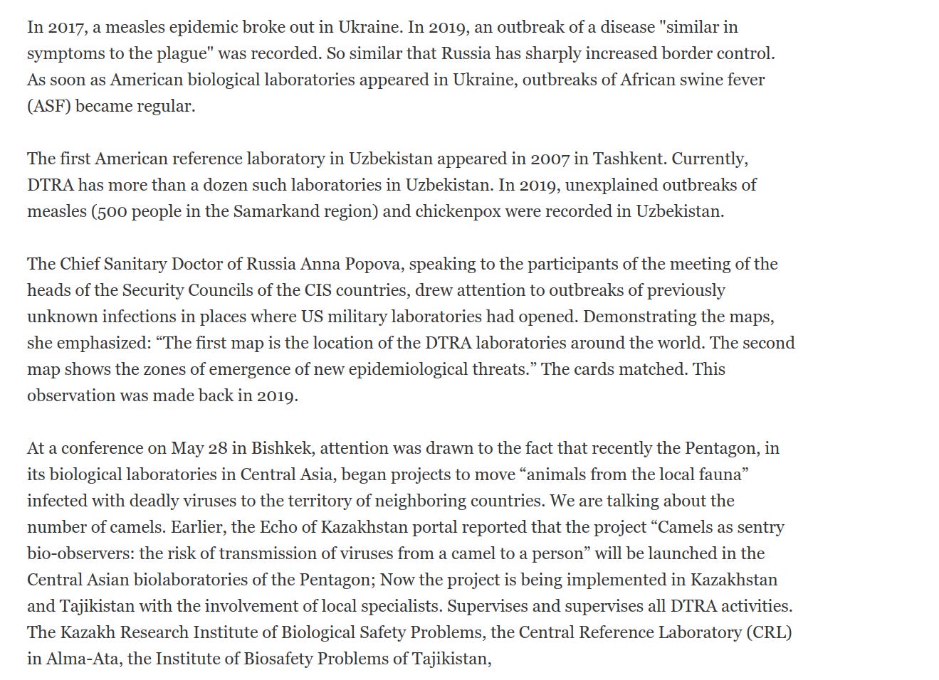 In 2017, a measles epidemic broke out in Ukraine. In 2019, an outbreak of a disease "similar in symptoms to the plague" was recorded. Pentagon’s biological laboratories in Central Asia